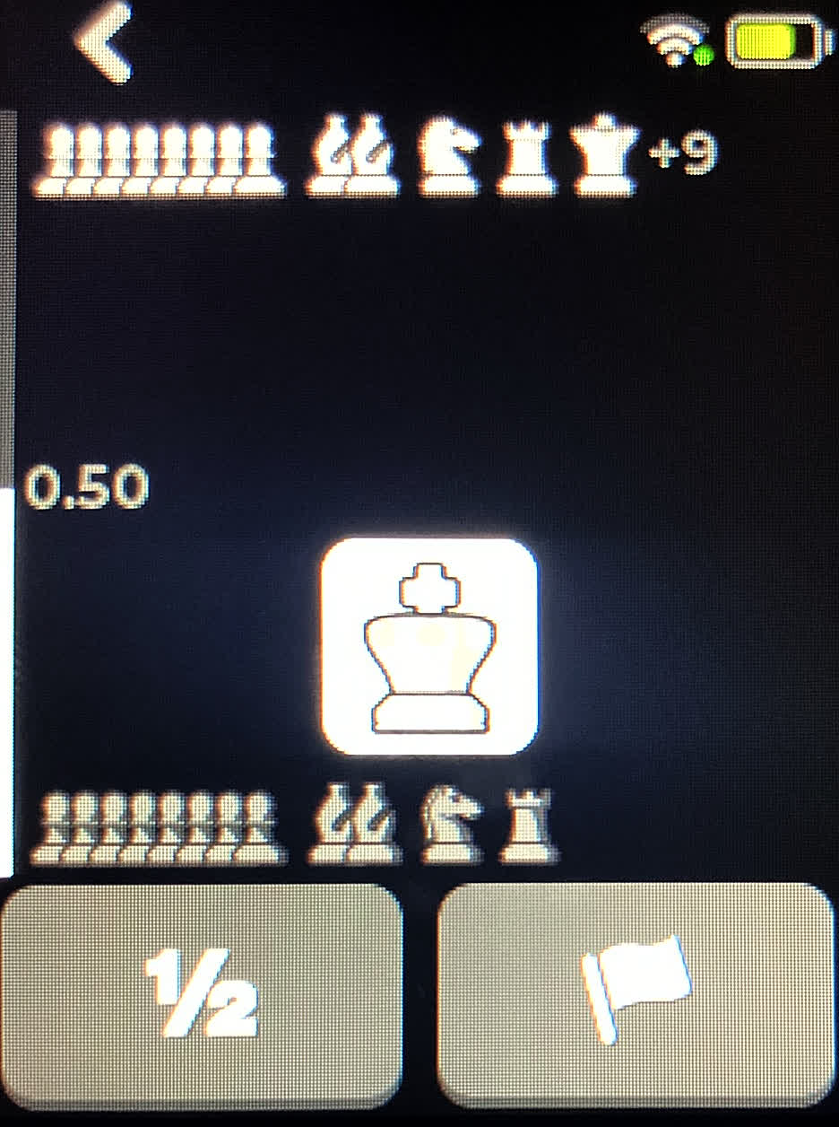 - Resignation - if you select the flag option, it will ask you to confirm your selection. Whose turn it is will determine who is resigning. For example, if it is white's turn and the flag button is pressed, black will be considered the winner by resignation.