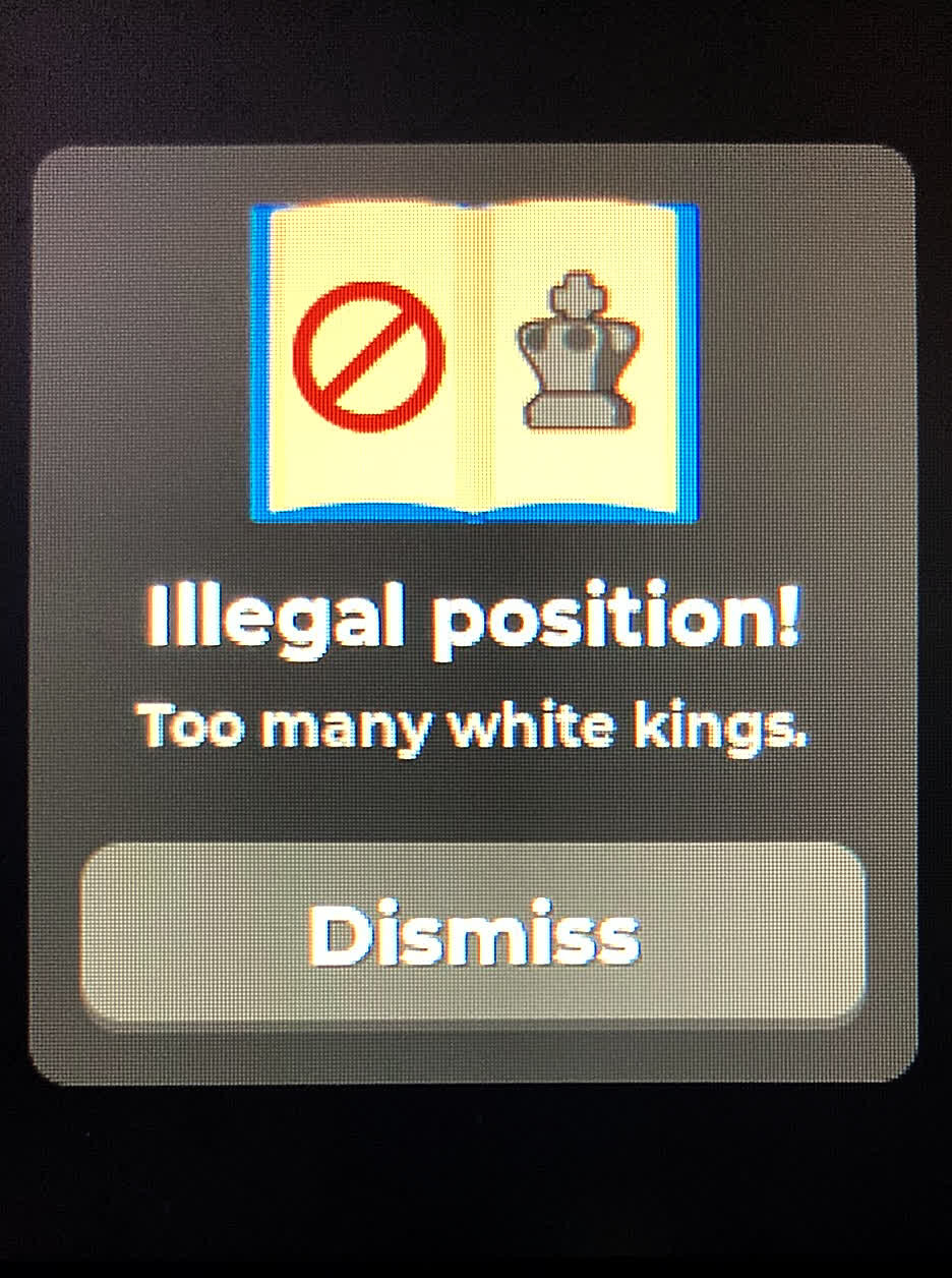 - Your ChessUp 2 board will alert you if you have setup an illegal position.