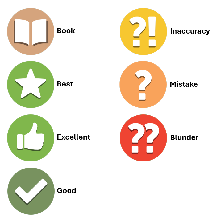 Below is a legend showing each of the move feedback icons. There are 7 different move qualities.