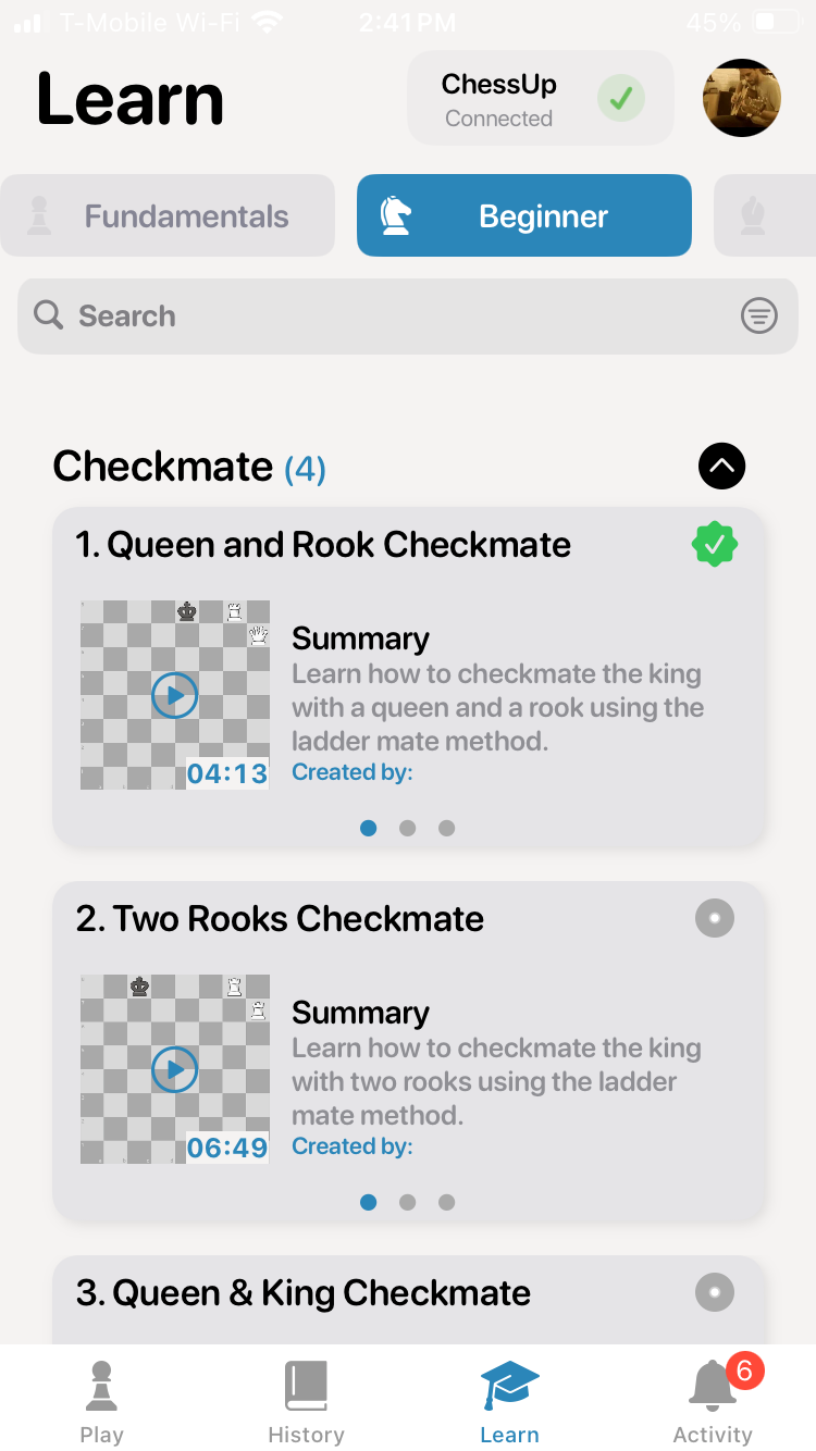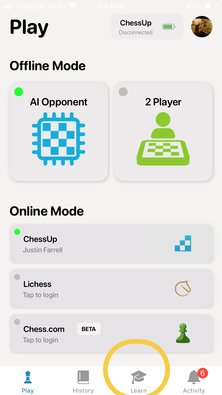 - First, make sure you have downloaded the latest version of the ChessUp app.