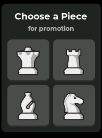 Note: A promotion pack is available for purchase here: https://playchessup.com/products/promotion-pack